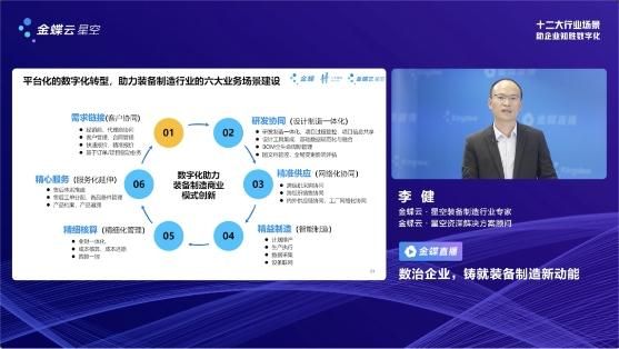 金蝶云·星空装备制造行业专家李健分享到,平台化是实现国产装备制造创新的有力保障;协同化是提升竞争力的重要支撑;数字化是实现智慧运营的必经之路,金蝶云·星空PLM+ ERP+ MES一体化平台,能够助力装备制造企业实现研、产、供、销、服一体化的数字化转型,迈向数智制造。