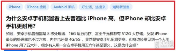 iPhone配置不如安卓手机,但比安卓更耐用?这是今天我在某问答平台上遇到的一个提问,不知道各位网友怎么看,这篇小文说说我的想法。