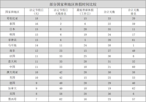 这里可以做个数据比较,全球大部分国家和地区,剔除周末的双休,法定节假日平均为11.7天,中国是11天。