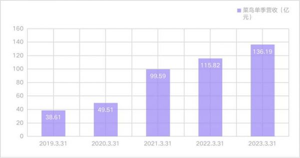 (数据来源:阿里历年财报, 制图:螳螂观察)3. 2023Q1,菜鸟实现营收136.19亿元,同比增长18%,如果不考虑内部的关联交易,菜鸟在今年一季度实现营业收入189.15亿元,同比增长15%,大超预期;