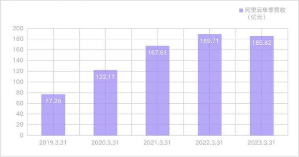 (数据来源:阿里历年财报, 制图:螳螂观察)4. 阿里云实现营业收入185.82亿元,同比微降2%,但从市场份额来看,阿里云国内云市场“一哥”的地位并未被动摇,且已经连续两年实现稳定盈利。