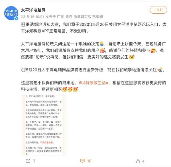 其实除了太平洋电脑网外,近些年也有天涯、A岛、中华网、凤凰论坛等知名老论坛宣布停运,停运原因也基本一致:活跃用户数量少,运营成本太高。