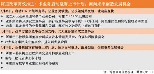 阿里智能云从阿里完全分拆独立走向上市,菜鸟、盒马启动上市计划,阿里国际数字商业集团启动外部融资,六大业务集团正式成立董事会。
