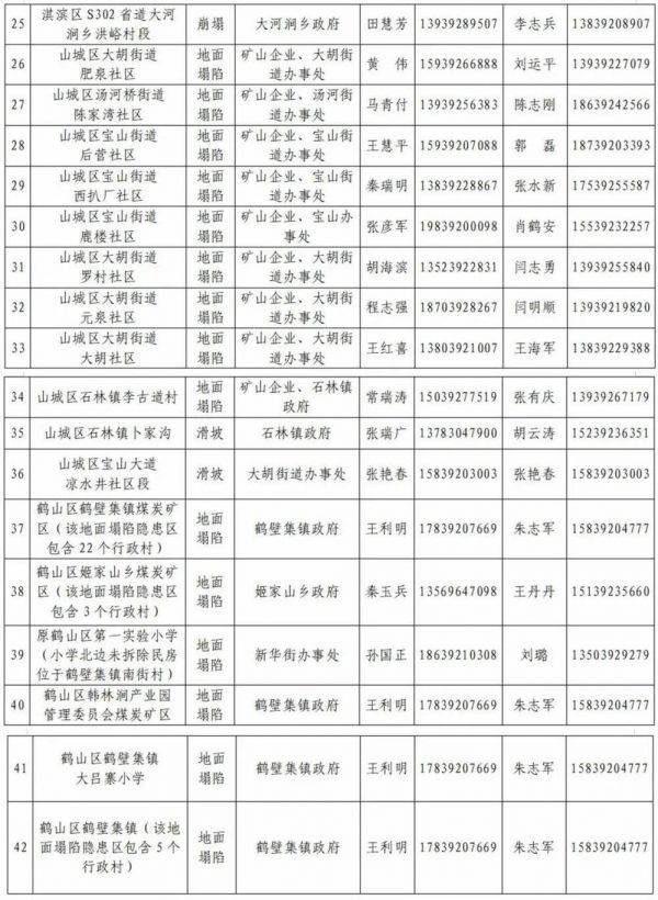 鹤山、山城两区存在不少地质灾害隐患风险。(图/《鹤壁市2023年度地质灾害隐患明细表》)