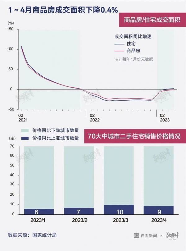 1至4月份住宅成交面积同比仅增加了2.7%,商品房成交面积同比降低0.4%;70大中城市中大多城市二手住宅价格相比去年同期在下降。