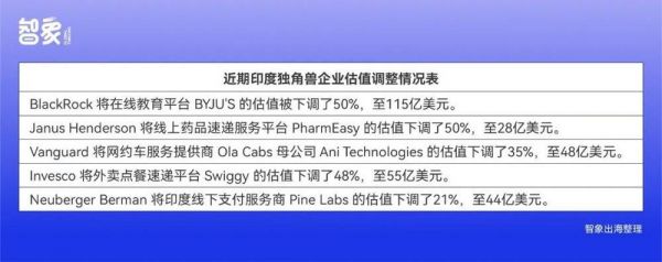 继在线教育平台BYJU'S市值对半蒸发以来,印度线上药品速递服务平台PharmEasy、印度外卖点餐速递平台Swiggy、印度线下支付服务商Pine Labs等多家独角兽企业,市值大幅缩减。