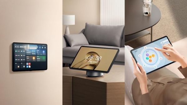 让智能中控屏 S2 「可手持、可桌面、可墙面」的秘密就藏在银色的 Dock 之中。后者有桌面、墙面两种规格,前者能让消费者无论是站姿还是坐姿,都有绝佳操控体验;后者在墙面上的厚度仅为 7 毫米,能和墙面融为一体,如同从墙壁中生长出一样。鸿蒙星环设计,可通过磁吸和卡扣方式将智能中控屏 S2 牢牢固定在墙面。Dock 中央的 Pogo Pin 接口,还可实时对中控设备进行充电及数据交换。