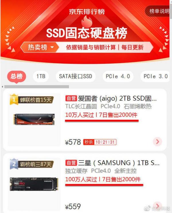 最近这几个月,在众多硬件产品中谁是主角?肯定不是老黄的显卡了,现在大部分网友听到显卡,都充满了反感。一块显卡卖到五,六千,甚至上万元,这根本不是在卖显卡,这是在卖金砖。也不是英特尔,AMD的处理器,更不是机箱,电源什么的。而是固态硬盘,并且还是国产固态硬盘。这个真不容易,国产硬件能成为主角,这是多少年都遇不到的事了。