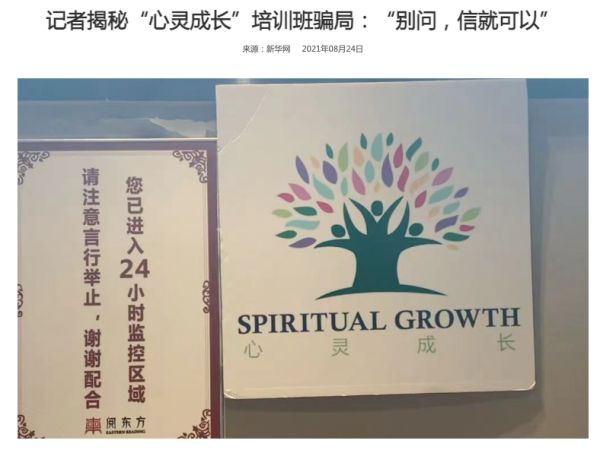 ▷ 新华网:《记者揭秘“心灵成长”培训班骗局:“别问,信就可以”》