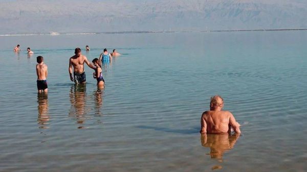 2022 年 11 月 30 日,在以色列艾因博凯克,游客在死海中戏水 王卓伦摄/本刊