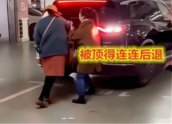 南京某商场地下停车场内,一女子和同伴“人肉占车位”,对方强行开车进入车位,女子和同伴被车顶得连连后退,愤而报警。