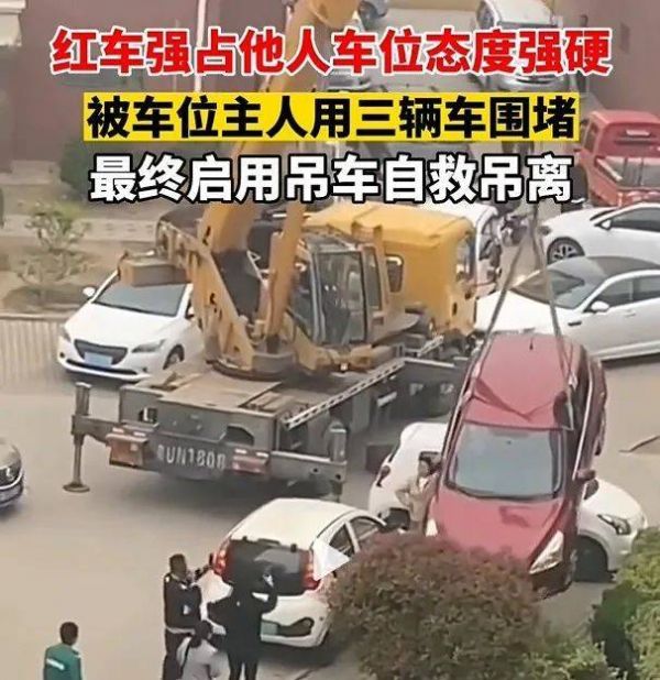 有人将停车玩出了围棋的既视感——今年“五一”假期,一辆红色私家车占用他人车位,并拒绝挪车。车位主人怒用三辆车围堵。结果,红车车主只好自行找吊车解围。