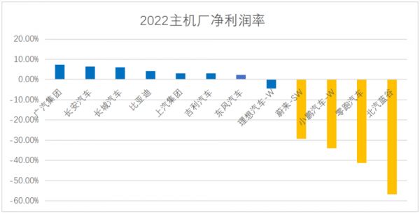 图:2022年主机厂净利润率,来源:上市公司公告,注:为便于比对,以下我们将毛利率低于12%的主机厂数据标黄