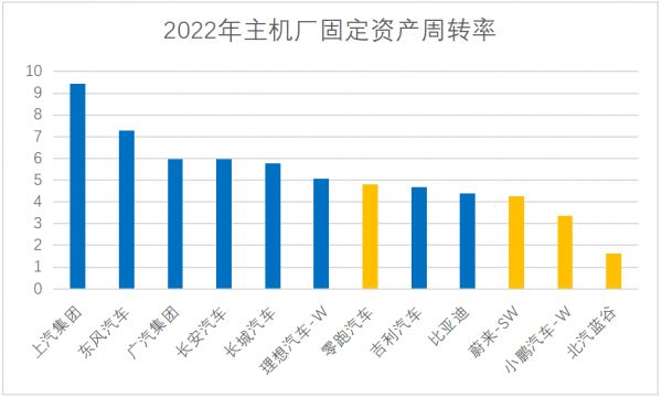图:2022年主机厂固定资产周转率,来源:上市公司公告