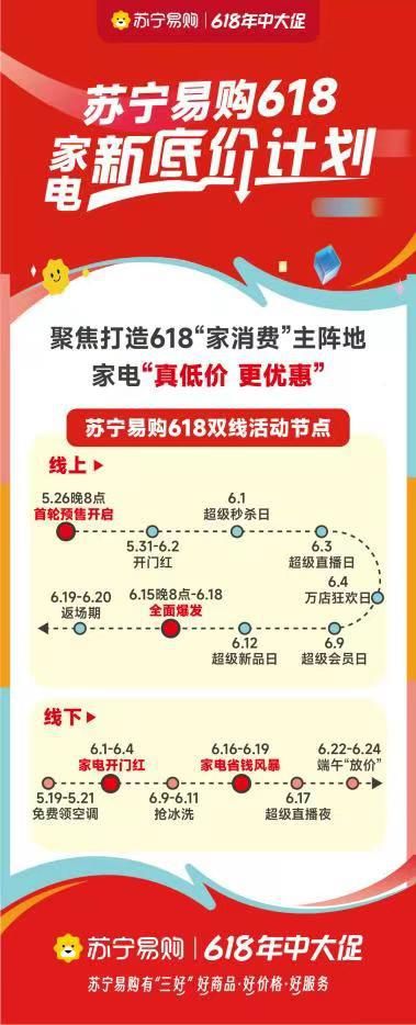 5月24日消息,苏宁易购发布“618家电新底价计划”,全面开启2023年618大促。