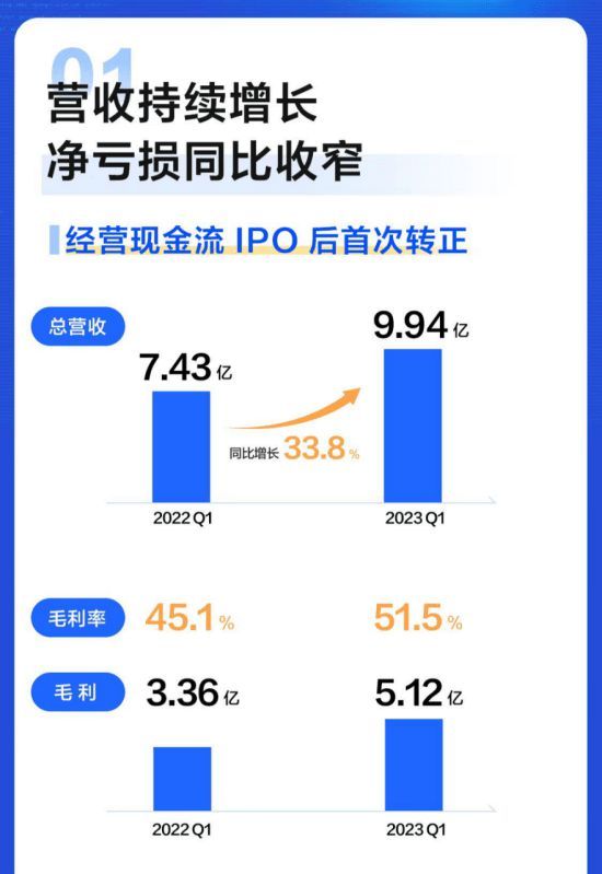 5月24日消息,知乎(NYSE:ZH;HKEx:2390)发布截至2023年3月31日未经审计的季度财报业绩。财务层面,知乎第一季度总收入为9.94亿元(人民币,下同),同比增长33.8%;2023年第一季度净亏损1.79亿元,同比收窄70.9%;毛利率从去年同期的45.1%提升至51.5%。此外,2023年第一季度知乎自IPO以来经营现金流首次转正达到5990万元。