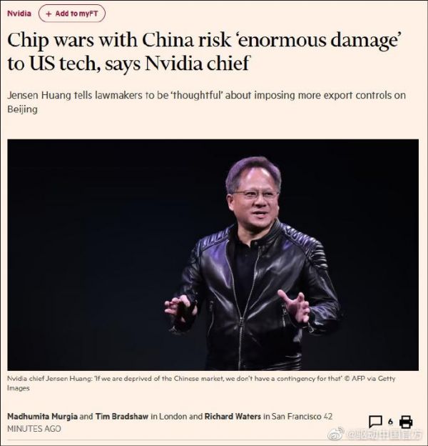 【#英伟达CEO警告美国政府#:世界上只有一个中国市场】