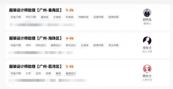 服装设计师助理这个职位,几乎不需要学历(图源:招聘网站)