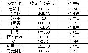 芯片龙头股多数下跌,阿斯麦跌幅超过2%,英特尔、博通、德州仪器等跌幅超过1%。