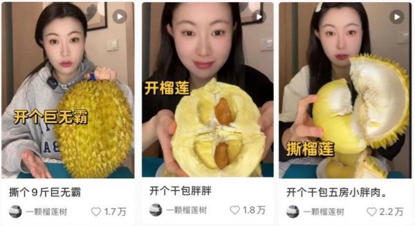 今年的“榴莲热”,很大程度上是从社交平台上的“榴莲盲盒”视频带起来的。