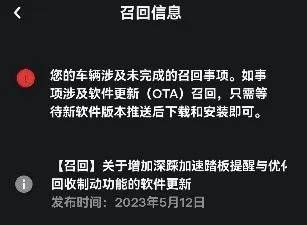 “您的车辆涉及未完成的召回事项。如事项涉及软件更新(OTA)召回,只需等待新软件版本推送后下载和安装即可。(召回)关于增加深踩加速踏板提醒与优化回收制动功能的软件更新。”这是2020款进口Model 3车主刘斌(化名)收到的特斯拉推送的一条召回信息。
