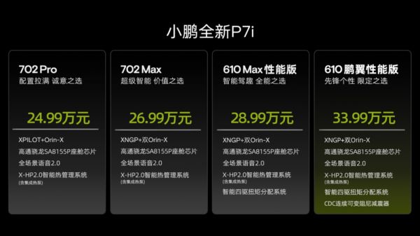 在传统车企起售价越来越低的同时,小鹏反其道而行之,新款的小鹏P7i没有涨价,但直接砍掉了低配置车型,让起售价来到了24.99万元,比竞对的起售价贵了一个级别。据传言这是新总裁王凤英的手笔,她入职后推迟了P7i的发布,对SKU进行了精简。