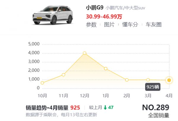 不过在业绩侧,小鹏短期内仍然看不到转好的趋势。第二季度的小鹏仍然很困难。P7i上市后,小鹏的整体呈现弱复苏趋势,3-4月均超过了7000台,但还没有回到之前的万台级别。按照汽车流通协会的统计,在经历了一阵交付高峰后,小鹏G9的月销量已经滑落到了几百台,可以基本宣告阶段性失败。新发布的G6能否在下半年成为爆款,以及产能爬坡后P7i是否会有明显增长,是小鹏当下唯二的希望。
