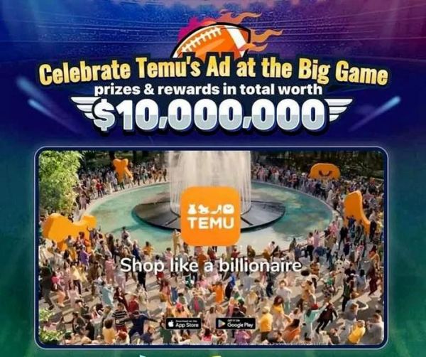上线以来,TEMU以拼多多模式冲击美国零售市场,一方面在沿袭低价模式的基础上效法SHEIN,专注性价比并聚焦女装品类,另一方面以烧钱补贴+社交裂变营销双管齐下,推出1分钱包邮专区、推荐奖励等政策拉新获客。同时在Twitter、Facebook等社交平台投放大量广告。仅在超级碗上就买下价值一亿美元的60秒广告。