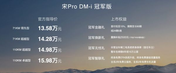 相比较售价区间更低(13.97~15.67万元)的枭龙,宋Pro DM-i冠军版的尺寸更大,纯电续航更长;和更高配的枭龙MAX(指导价15.97~17.97万元)相比,宋Pro尽管尺寸稍逊且没有四驱系统,但纯电续航稍长且整体售价更低。更不用说在在新能源汽车这个赛道上,销冠比亚迪和长城相比,拥有更强的消费者认同感。