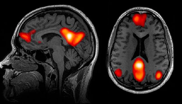 人脑的功能磁共振成像揭示了与默认网络相关的一些区域——当我们想到他人时最活跃的神经中枢区域。图片来源:John Graner,Terrence Oakes,Louis French and Gerard Riedy