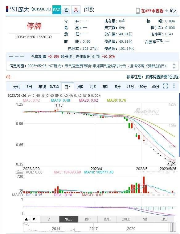 《告知书》显示,截至2023年5月24日,庞大集团股票收盘价已连续20个交易日低于人民币1元,根据《上海证券交易所股票上市规则(2023年2月修订)》规定,庞大集团股票已经触及终止上市条件,上交所依据相关规定对庞大集团股票作出终止上市的决定。