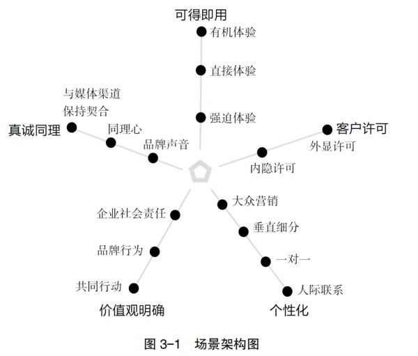 《场景营销》中,通过一个架构图来实现和衡量某一时刻的潜在场景。