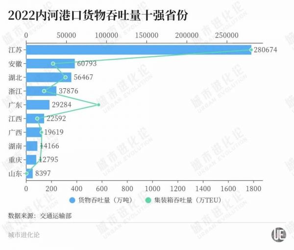 交通运输部数据显示,2022年河南内河港口货物吞吐量0.23亿吨,即便在中部省份中也远远落后——同期安徽、湖北、江西、湖南吞吐量分别为6.08亿吨、5.65亿吨、2.26亿吨、1.41亿吨,河南集装箱吞吐量3万标箱,湖北、安徽分别为313万标箱、214万标箱。