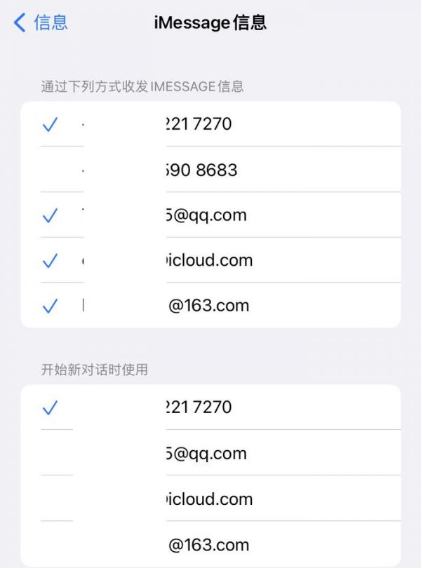 针对iMessage上的诈骗和骚扰短信,可以先考虑从地址下手。在iOS设备上的设置——信息——iMessage信息中可以在“发送与接收”中设置地址,试着关闭某个手机号码或邮箱。如果手机号和邮箱基本可以确定都被骗子掌握了,则可以重新绑定一个新邮箱。毕竟对大部分人来说,iMessage主要用于熟人通讯,只要提前告知对方,更改地址不会影响正常功能。