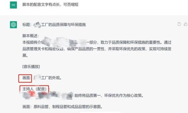 图│合理输入指令,用GPT生成工厂的短视频介绍脚本