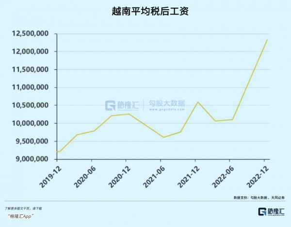 相对应的,越南打工人的平均收入水平,才涨了30%多,而且是在2022年下半年才开始猛涨的。