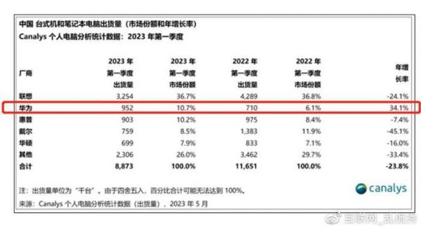 近日,知名机构Canalys发布了一份2023年一季度中国个人电脑市场的数据情况。