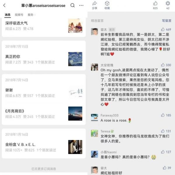 2018年,章小蕙以自己的名字加上美国诗人Gertrude Stein的诗句“a rose is a rose is a rose”,开设了自己的微信公众号并发布了第一篇文章,引来无数或是长久一直追随、或是久闻大名的读者前来打卡留言。