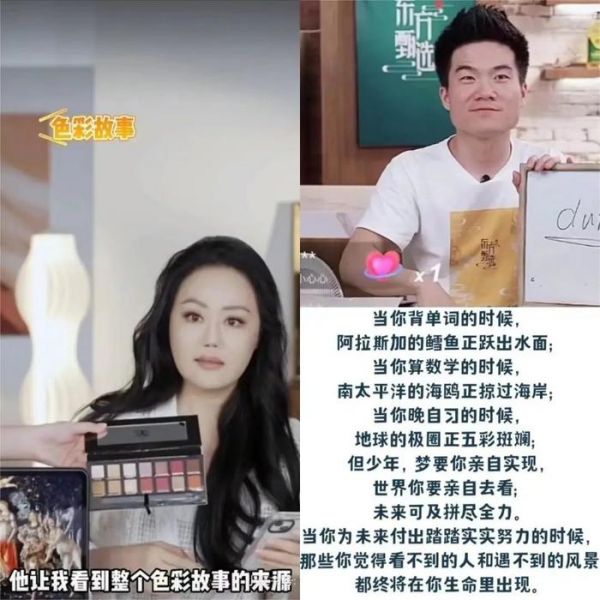 令他出圈的是其兼具幽默和诗意的产品介绍。董宇辉诙谐地调侃自己的方脸“大家在六月的清晨点进直播间,看着我像兵马俑一样的脸型,感受到了人生的无常和命运的不公。”观众正乐着呢又被他脱口而出的诗句猝不及防地触动,“当你背单词时,阿拉斯加的鳕鱼正跃出水面;当你算数学时,南太平洋的海鸥正掠过海岸;当你晚自习时,地球的极圈正五彩斑斓。但少年,梦要你亲自实现,世界要你亲自去看。未来可期,拼尽全力。”