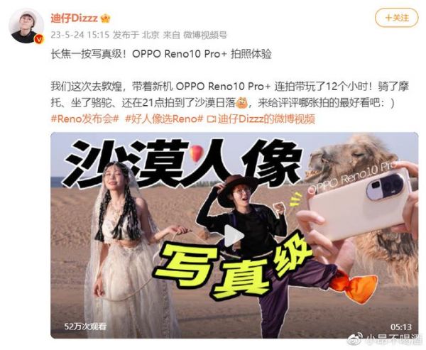 为了检验手机的拍摄实力,在该视频中博主带着OPPO Reno10 Pro+前往敦煌完成一期“沙漠拍照挑战”,连拍带玩长达12小时,拍出了三组不同风格的长焦人像照片,多方面呈现出该机在实际拍摄中所带来的增益效果。