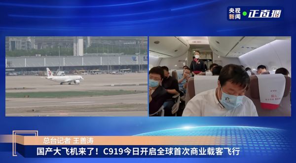 另外,根据全程记录了C919商业首航的新京报记者报道,东航还专门为C919拍摄了以“国色染山河,目之所及皆美好”为主题的专属航空安全须知视频。该视频贴合C919机上设施和特点,以愉悦视听的形式巧妙融入一系列中华文化元素。