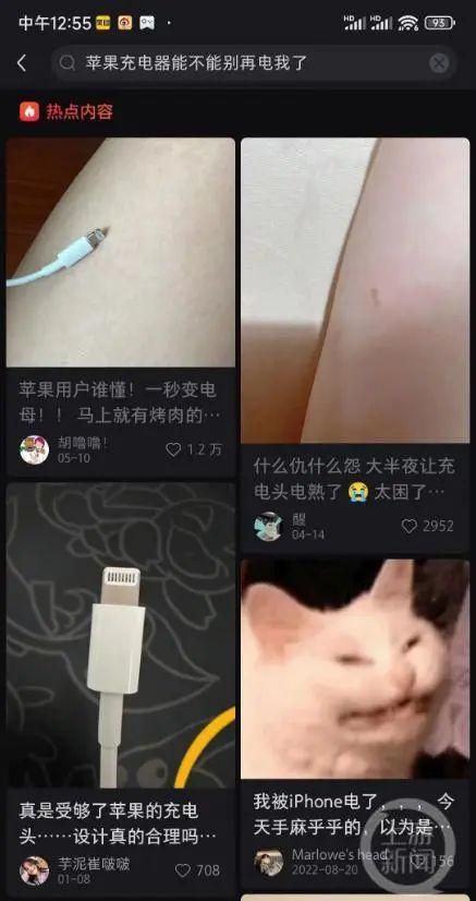 多人发文称被苹果充电头电到。/小红书APP截屏5月27日,记者看到,博主“胡噜噜”在笔记中写道:“苹果用户谁懂!一秒变电母!”博主“醒”更是分享了她的经历:睡觉时半夜不小心压到了苹果充电头,导致胳膊被电伤,留下了一个印痕。