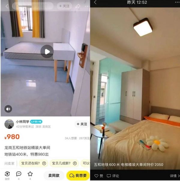 我在小红书、抖音、咸鱼、豆瓣和58同城五个平台中随机找了几个房子:位于城中村、带家具、近地铁、价格相对合理。