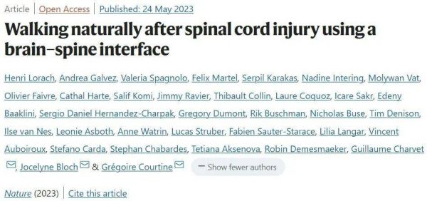 [1] Lorach, H., Galvez, A., Spagnolo, V. et al. Walking naturally after spinal cord injury using a brain–spine interface. Nature (2023). https://doi.org/10.1038/s41586-023-06094-5