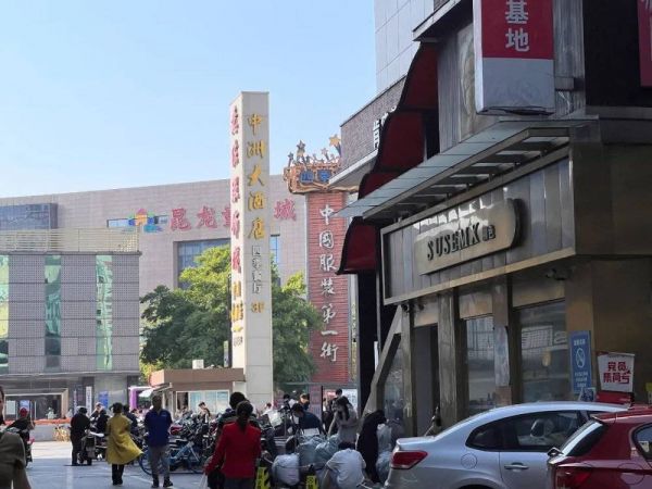四季青街区有一个立柱,远远望去,“中国服装第一街”七个大字赫然醒目。