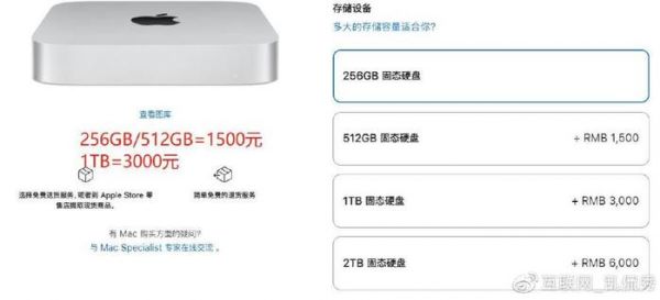 同样拿火爆的Mac Mini举例,256GB升级成512GB,要加1500元,而1TB升级成2TB,要加3000元。算下来是256GB/512GB=1500元,而1TB=3000元。