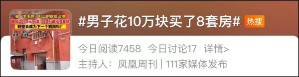 最近这一条热搜太抓人眼球了:花10万块买8套房。
