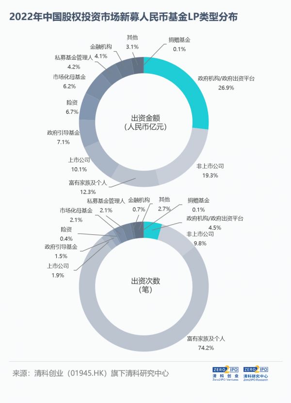 尽管如此,但过去十年,风投行业不乏“掘金”的故事,这对富豪家族们有着极高的吸引力。清科研究中心数据显示,2022年人民币基金募资中,“富有家族及个人”是活跃度最高的三大类LP之一,参与认缴出资次数累计超4.2万笔。