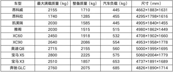 需说明,同一车型的不同型号之间也有可能存在微小偏差,一般在5kg~30kg波动,本表只作为初步参考。