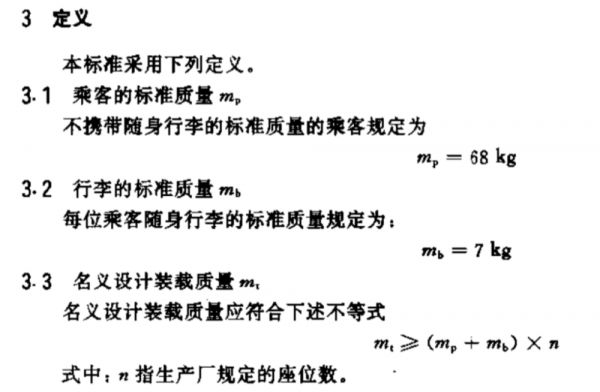 比亚迪的数据正好是:“75=68+7”,符合标准要求。所以转换到国标后,我们可以知道下上文提到的75kg/人是什么意思,它指的是人体重为68kg,携带行李质量为7kg。